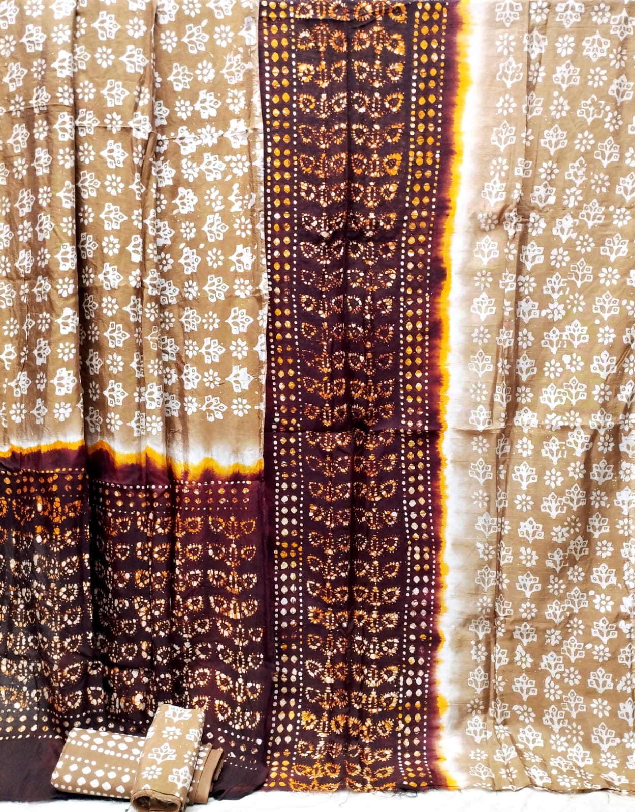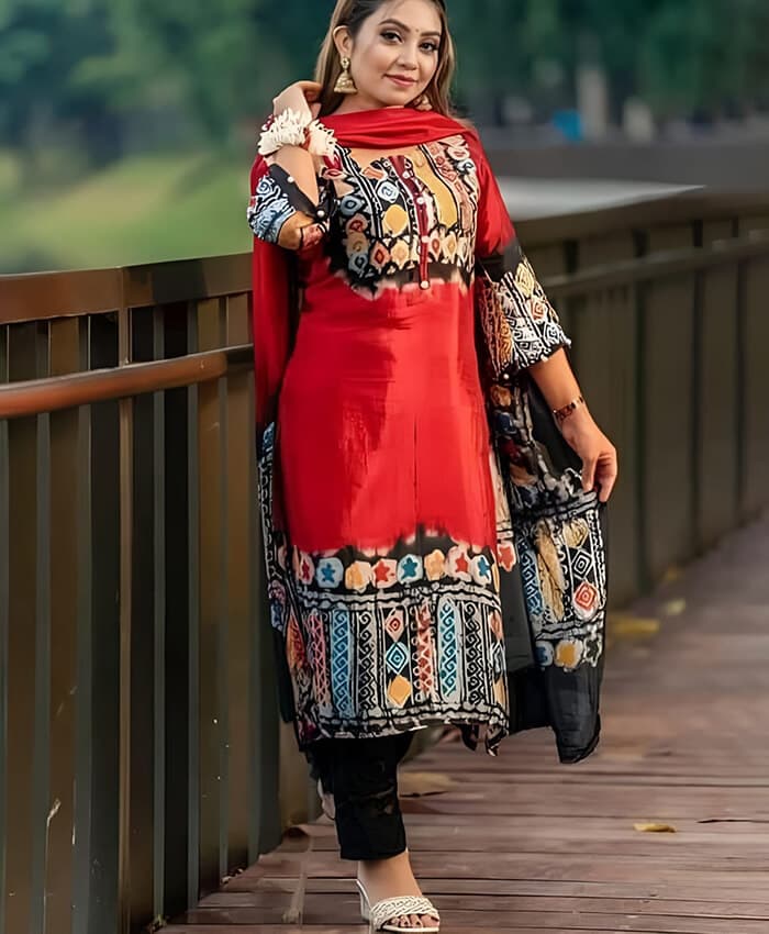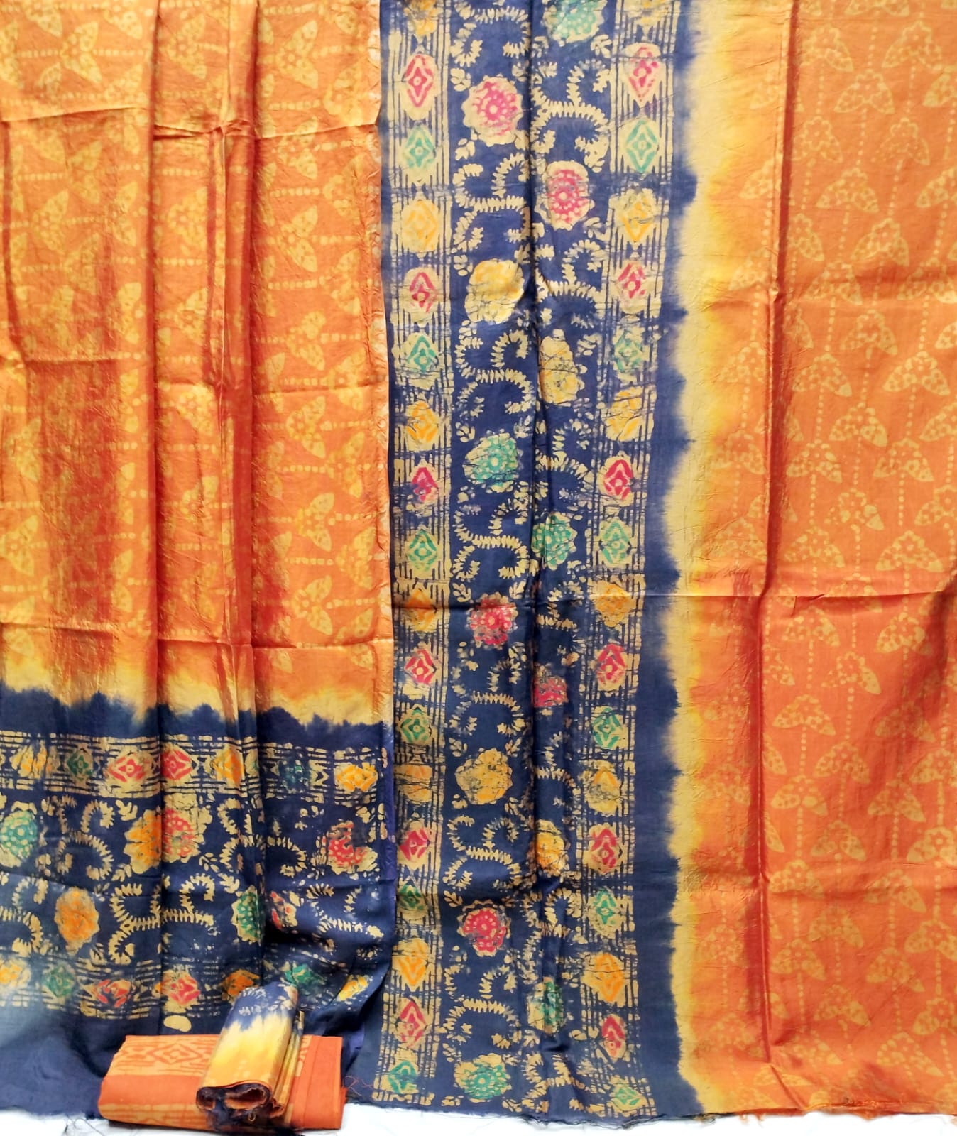 আপমাদের জন্য নিয়ে আসলাম উন্নত মানের কুমিল্লা বিখ্যাত বাটিক সিল্ক থ্রিপিস। আমাদের বাটিকে পাবেন আধুনিক রুচিশীল ডিজাইন এবং কালার ভেরিয়েশান।।